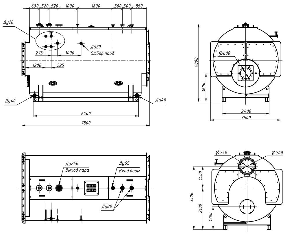 Паропроизводительность котлов от 1 до 30 т/ч.